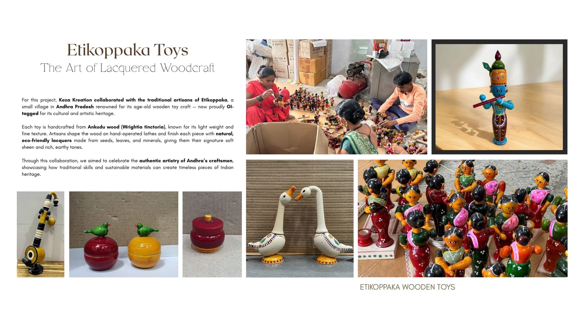 From the lacquered woodcraft of Etikoppaka, to the woven grace of Rajasthan’s Leheriya, to the handmade icons of Bengal and the straw artistry of Kerala, each project we undertake celebrates authentic Indian craftsmanship while carrying the refinement and thoughtfulness expected in premium gifting.